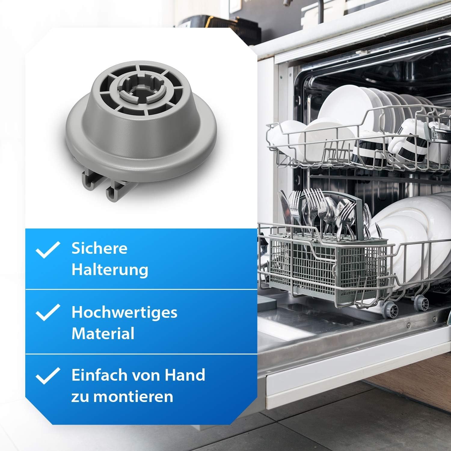 Yüksek Kaliteli Malzeme: Bulaşık makinesi sepeti ruloları, sağlığınız için uzun bir dayanıklılık ve güvenlik sağlayan sağlam ve çevre dostu plastikten yapılmıştırTeslimat kapsamı: 4 x bulaşık makinesi sepeti Çap – 34 mm, yükseklik – 15 mm, malzeme – plastik,renk: gri Ticimark