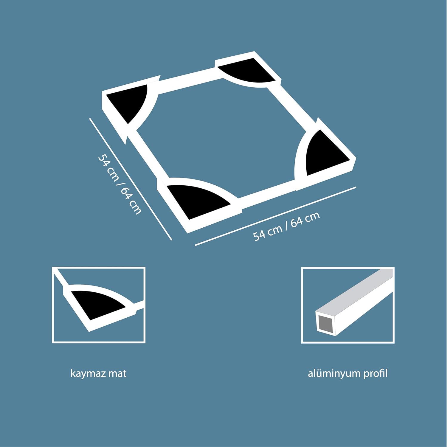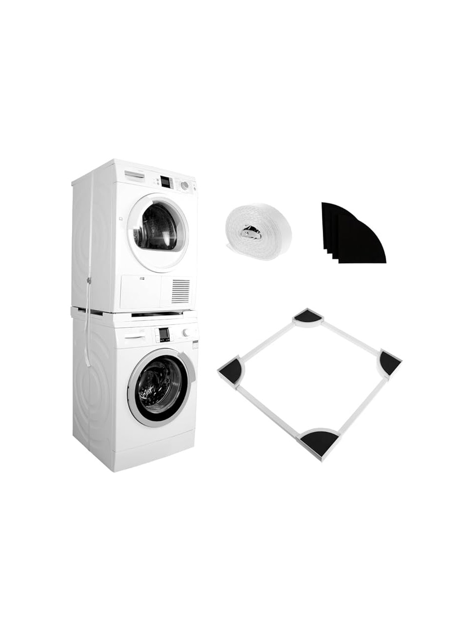 Çamaşır Makinesi Ve Kurutma Makinesi Üst Üste İstifleme KitiÇamaşır Makinenizin Üzerine Kurutma Makinenizi Sağlam, Güvenli Ve Dengeli Bir Şekilde Yerleştirmenizi Sağlayarak, Aradaki Boşluğu Ortadan Kaldırır Ve Dikeyde Alan Kazancı Sunar. Bu Ürün Yalnızca Yerden Tasarruf Ettirmez; Aynı Zamanda Makinelerinizi Sabitleyerek Titreşimi Ve Kaymayı Önler, Uzun Vadede Cihazlarınızın Ömrünü Uzatabilir. Ayrıca Çamaşır İşlemleriniz Çok Daha Pratik Hale Gelir. Kurulumu İse Oldukça Kolaydır! Ekstra Servis Çağırmaya Veya Teknik Bilgiye İhtiyaç Duymadan, Dakikalar İçinde Kurulumu Tamamlayabilir Ve Kullanmaya Başlayabilirsiniz.Ürün Boyutları55 x 55 x 10 Cm540x540mm Minimum Ölçü640x640mm Maksimum ÖlçüÇamaşır – Kurutma Makinesi Ayarlanabilir Bağlantı İstifleme KitiPaket İçeriği4 Adet Köşe Aparatı4 Adet Destek Profili8 Adet Kaydırmaz Sünger8 Adet Vida1 Adet Dubel1 Adet Kancalı Vida1 Adet Plastik Kelepçe1 Adet Sabitleme KayışıUyumlu Tasarım: Çoğu Marka Ve Model Çamaşır Ve Kurutma Makinesi İçin Evrensel Olarak Uyumlu, Güvenli İstifleme Çözümü SunarAyarlanabılır Ölçüler: Genişliği 54-64cm Ve Derinliği 54-64cm Arasında Ayarlanabilen Esnek Yapı İle Farklı Boyutlardaki Makinelere Uyum SağlarDayanıklı Malzeme: Yüksek Kaliteli Metal Konstrüksiyon Ve Kaymaz Kauçuk Pedler İle Uzun Ömürlü Kullanım Ve Stabilite SağlarKolay Montaj: Herhangi Bir Alet Gerektirmeden Dakikalar İçinde Kurulabilen Pratik TasarımAlan Tasarrufu: Çamaşır Ve Kurutma Makinelerini Güvenli Şekilde Üst Üste Yerleştirerek Banyonuzda Değerli Alan Kazandırır Ticimark