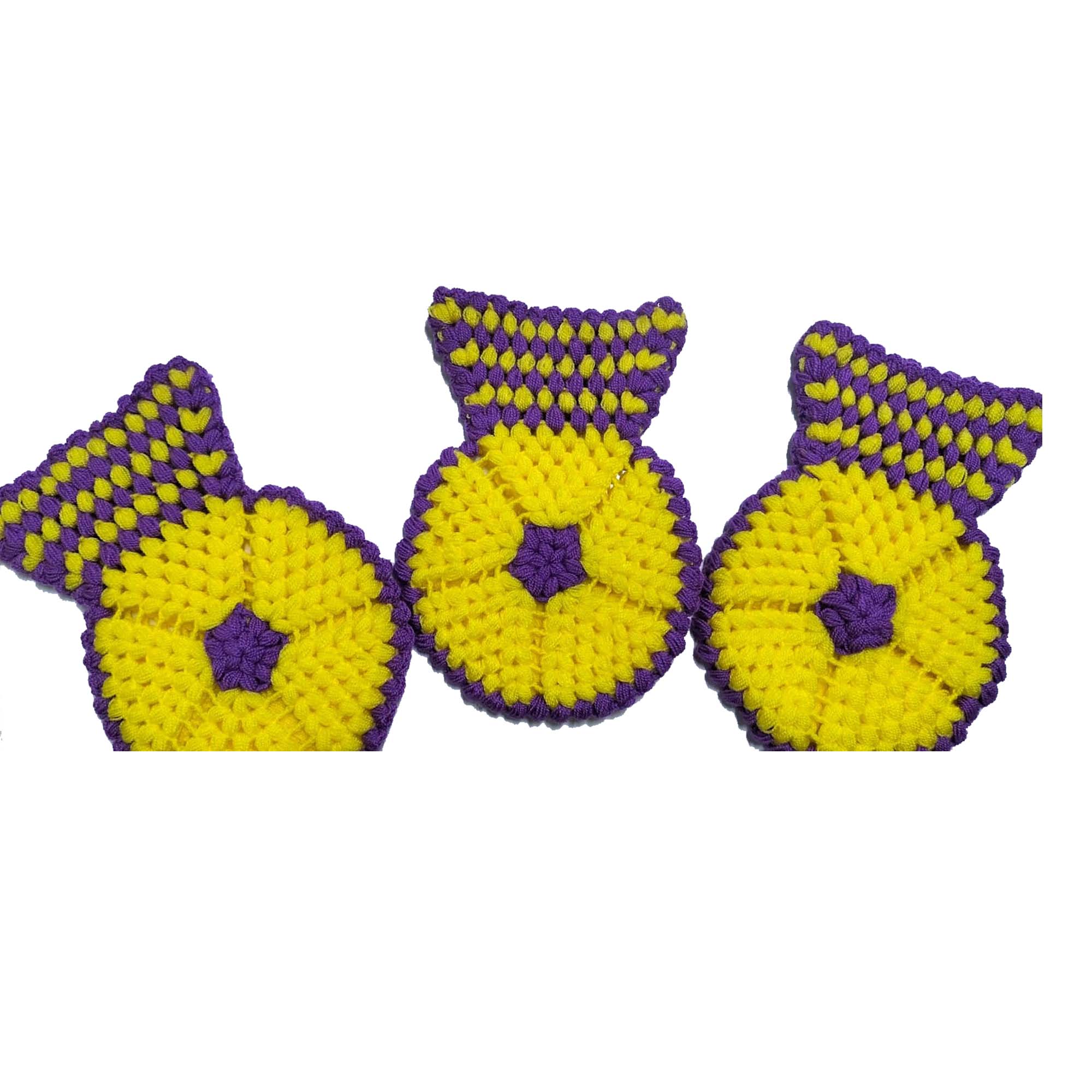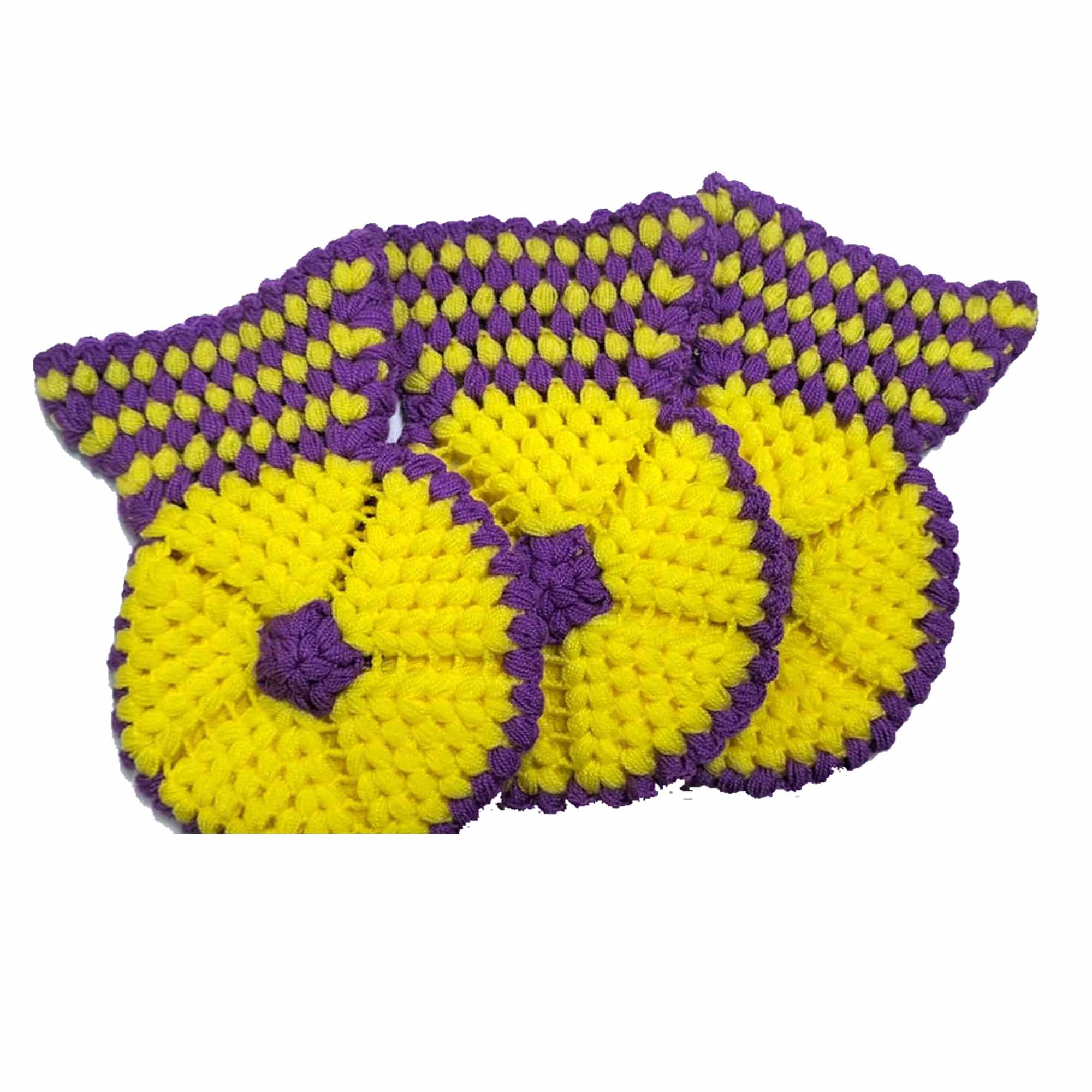 El işi örme Sarı Mor üçlü Takım Banyo Lifi