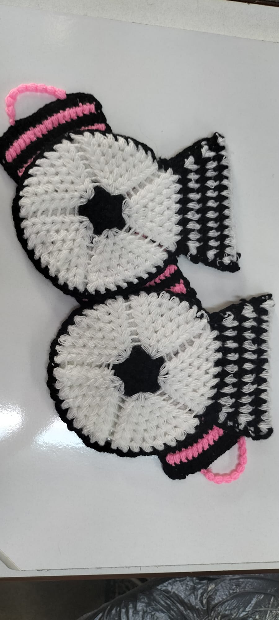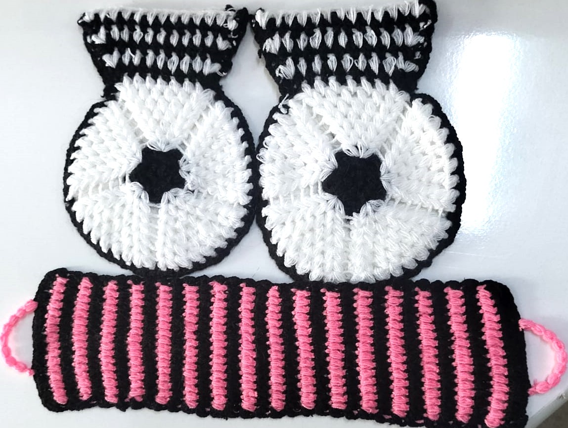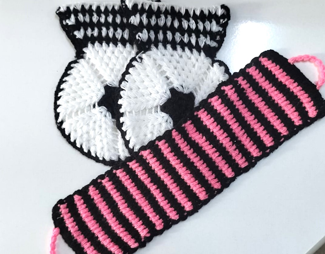 El işi örme Siyah Beyaz iki renkli pembe-siyah üçlü Takım Banyo Lifi Ticimark