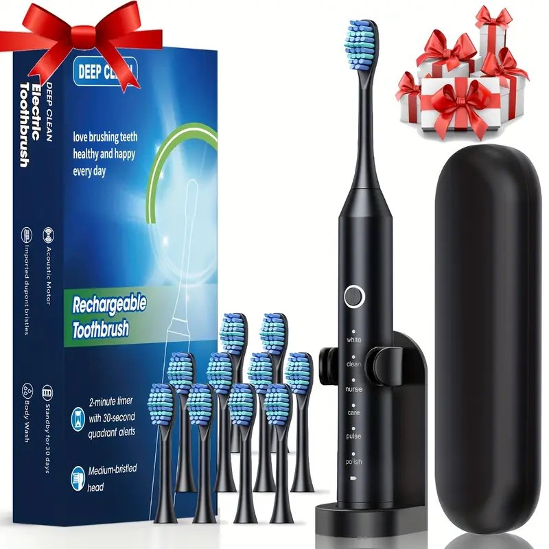 Elektrikli Diş Fırçası Seti Otomatik Şarj Edilebilir 6 Temizleme Modu USB Şarj 10 fırçalı
