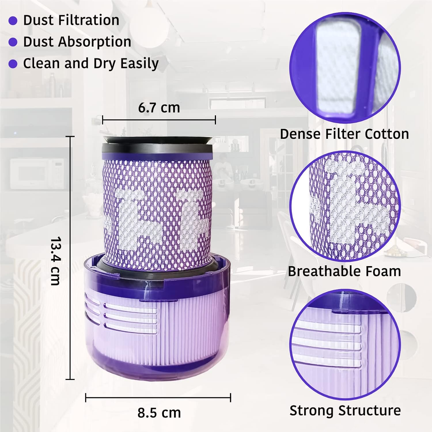 Kablosuz Süpürge Uyumlu Hepa Filtre Dysn V12 ile uyumluÜrün Boyutları U x G x Y 13U x 6.4G x 30Y santimetreÜrün AçıklamasıUyumlu modeller:Dyso n ile uyumlu V12 elektrikli süpürge yedek filtre için yeniden yıkanabilir filtre parçasıÖzellik:* 100% yepyeni yüksek kalite* Yüksek kaliteli malzemeden yapılmış, daha dayanıklı.* Yüksek kaliteli vakum filtresi, küçük partikülleri, yüzen tozu, poleni vb. Etkili bir şekilde engelleyebilen iki arada tasarımı benimser.* Filtre tozu, filtre egzoz gazı, elektrikli süpürge motoru korumak* Filtre yüksek verimli filtre benimserTozu etkili bir şekilde filtreleyebilen malzeme, vb.Toz parçacıkları motora girer, uzun ömür sağlarDYS ile uyumlu elektrikli süpürge.* Her 4-6 ayda bir değiştirilmesi gerekiyor, evcil hayvanlarınız varsa kısaltınToz giderme verimliliğini artırmak için zamanı değiştirin.Paket İçeriği:1 * filtre Ticimark
