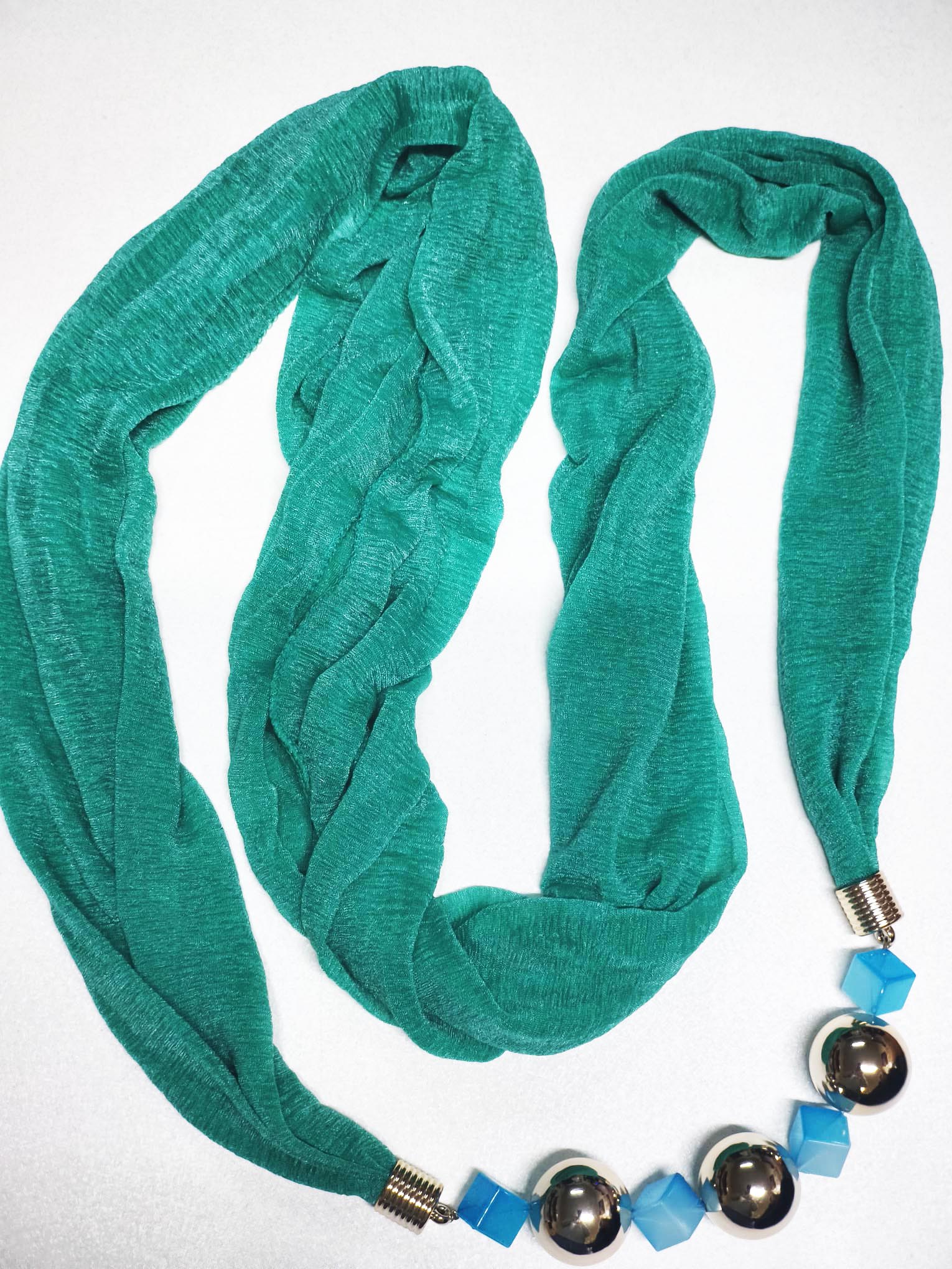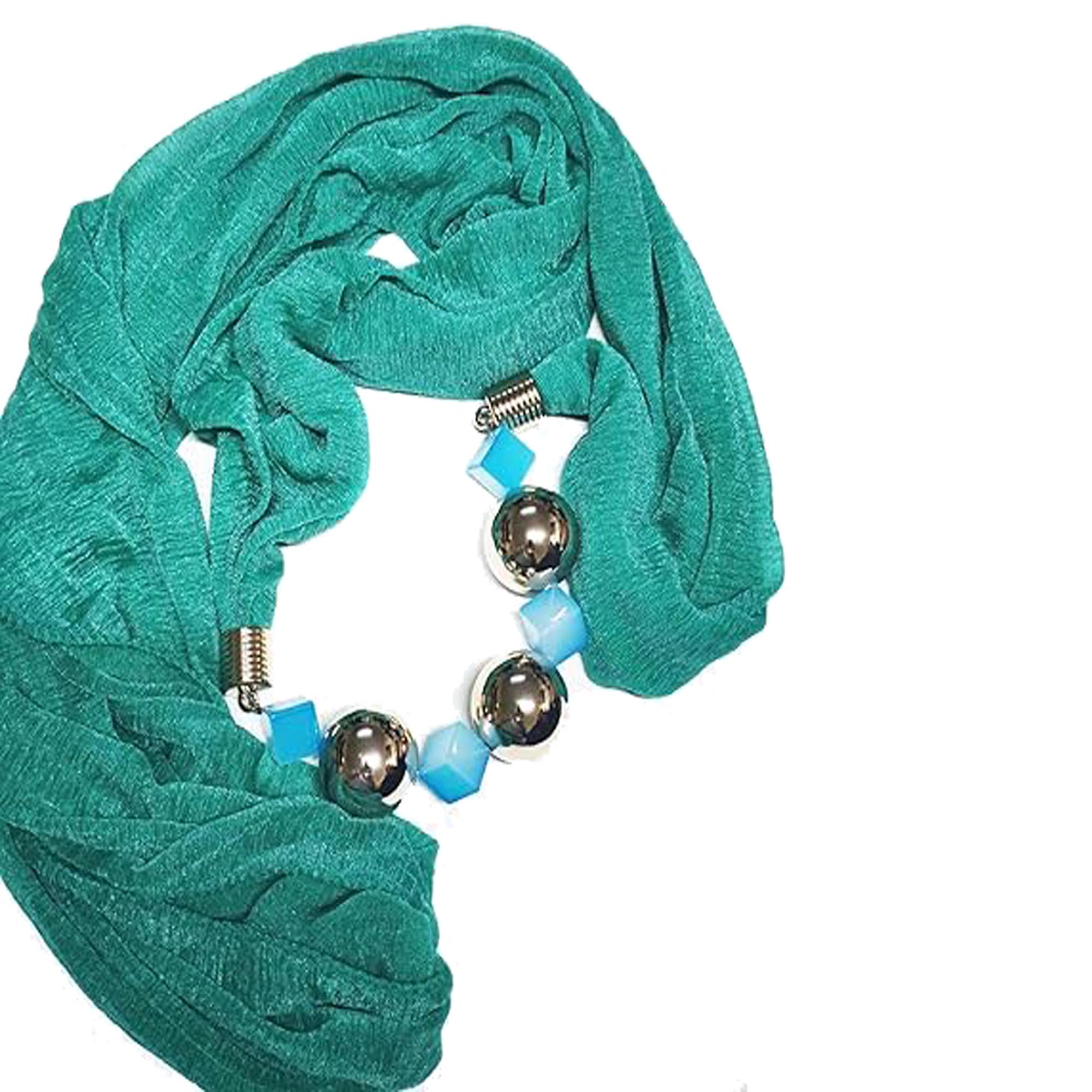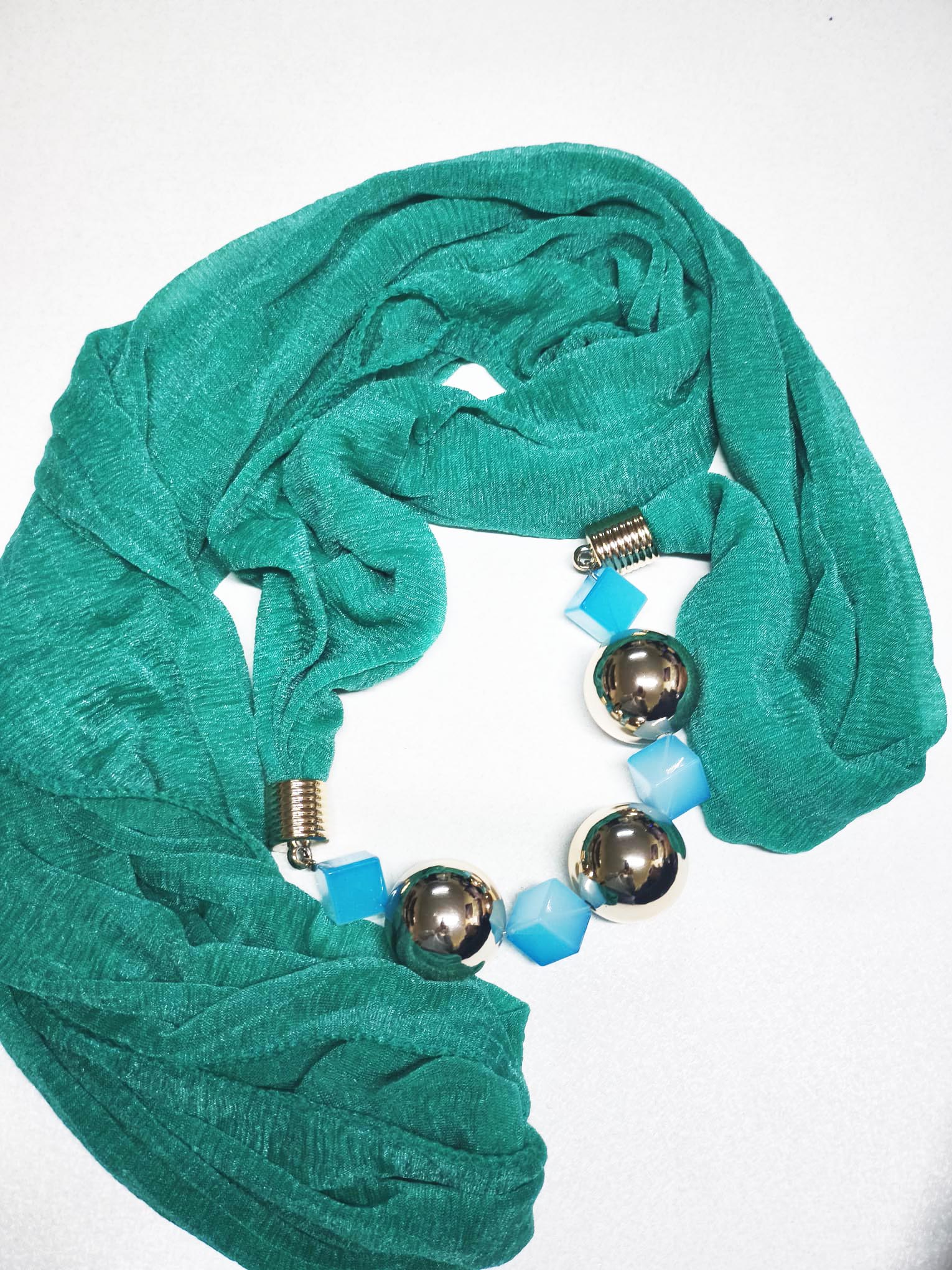Şık Yıpranmış Görünümlü Yeşil Fular/Şal •Zarif Detaylı Metalik Boncuklu Kolye Uçlu Tasarım •Kadınlar İçin Yazlık & Mevsimlik Aksesuar Ticimark