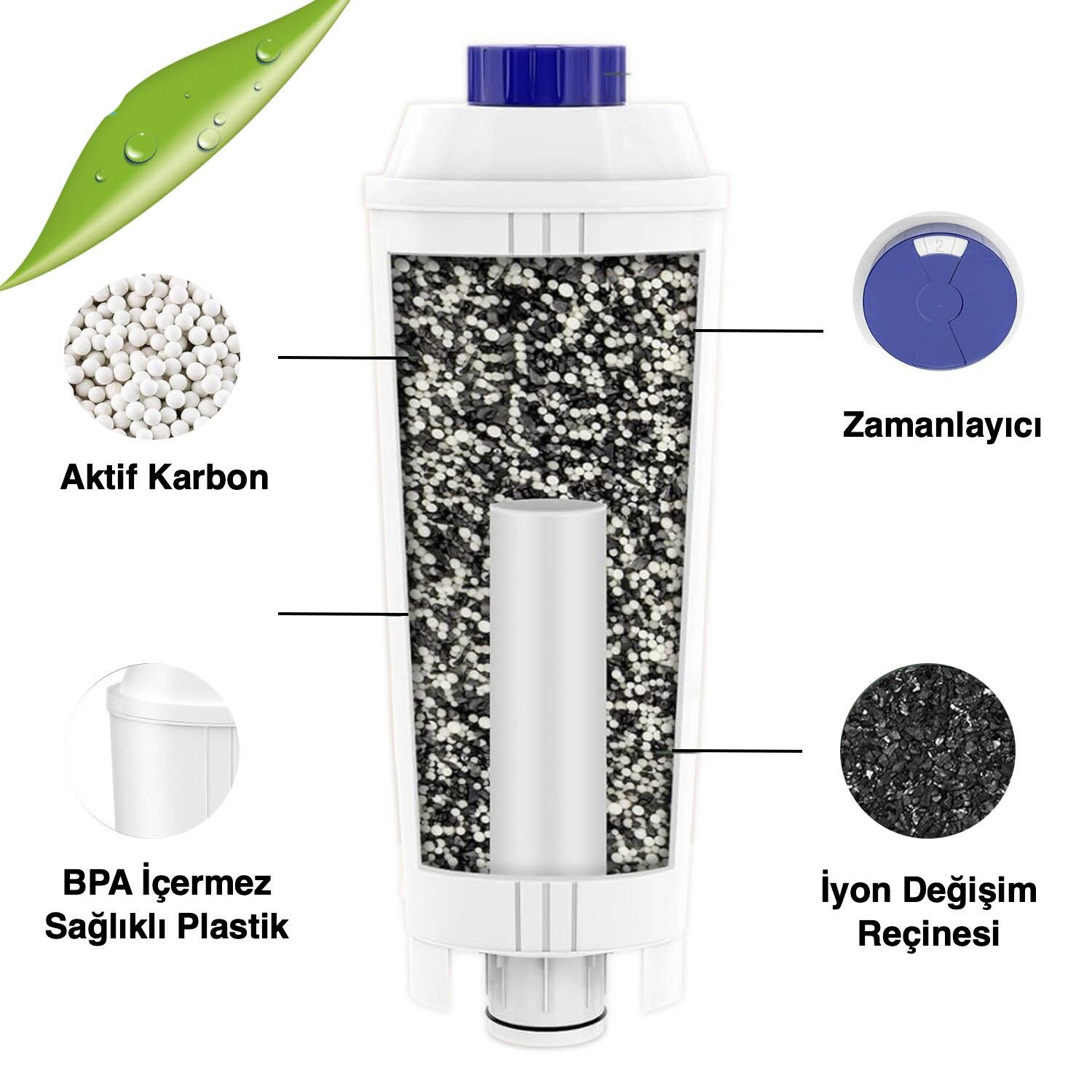 Pure Kafe DS012 – Delonghi DLSC002 için 2 Adet Kahve Makinesi Su FiltresiÜrün içeriği – PURE KAFE DS012 Kahve Makinaları için Su Arıtma Filtresi – 2 Adet Ticimark