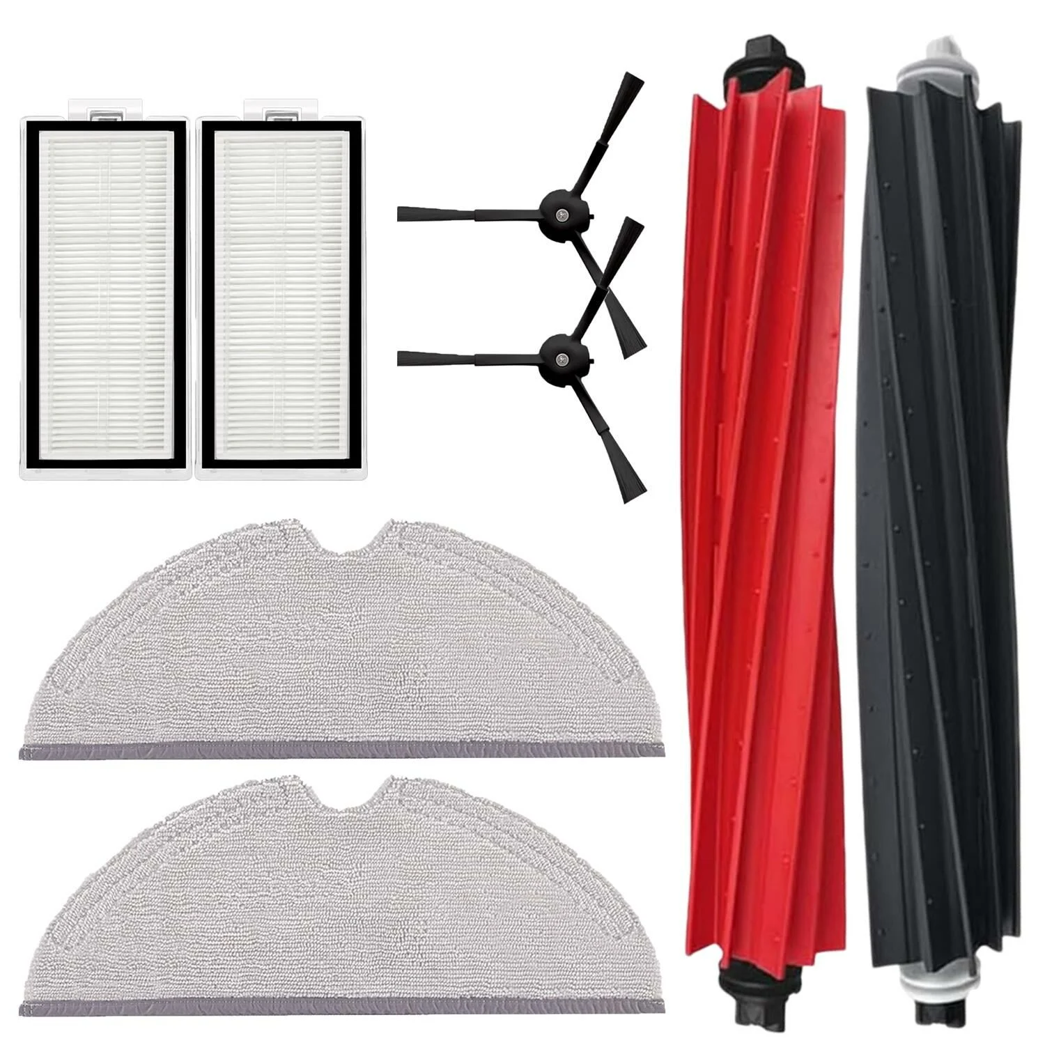 Ana Fırça (SiyahKırmızı ): 2 Adet (Halı ve sert zeminler için etkili temizlik)Yan Fırça (Siyah): 2 Adet (Köşeler ve kenarlar için)HEPA Filtre: 2 Adet (Hava kalitesini korumak için yüksek verimli filtrasyon)Mop Bezi: 2 Adet (Islak temizlik ve silme fonksiyonu için) Ticimark